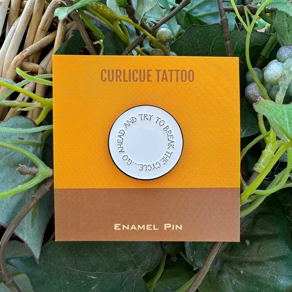 1" soft enamel pin of my original "Go ahead and try to break the cycle…" design. Black metal accent with PVC backing. A cute addition to your lanyard or denim jacket!